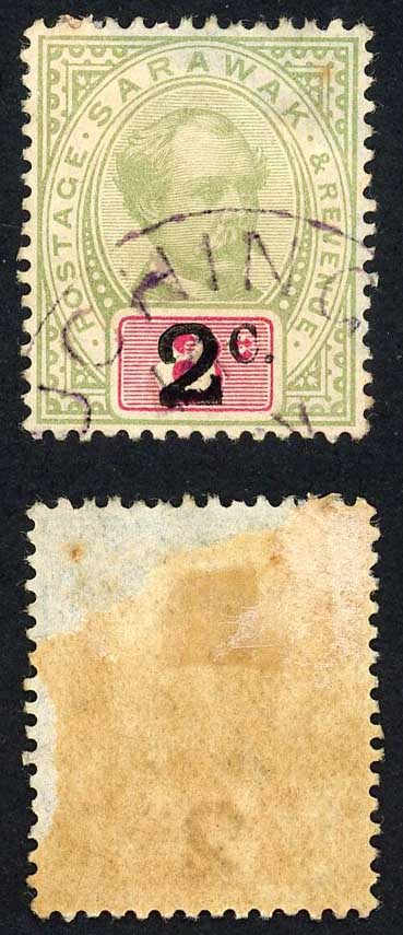 Sarawak SG24 2c on 8c Green and Carmine CDS used Cat 14 pounds
