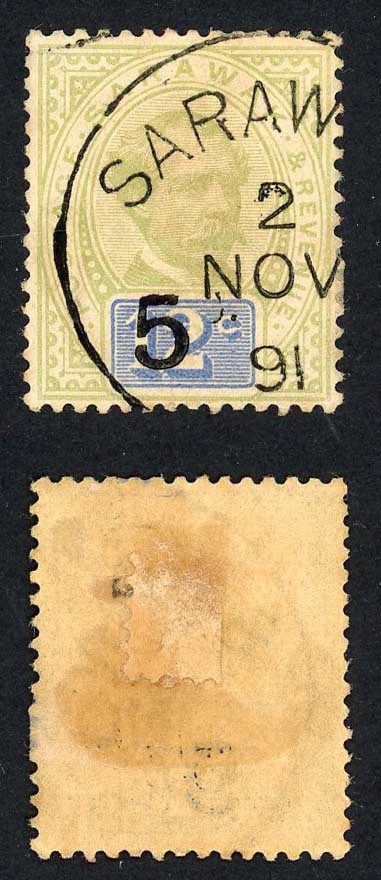 Sarawak SG25 5c on 12c Green and Blue C nearly omitted