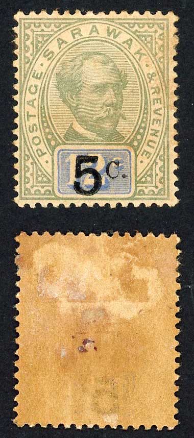 Sarawak SG25 5c on 12c Green and Blue (stop after c) LOW C (toned)