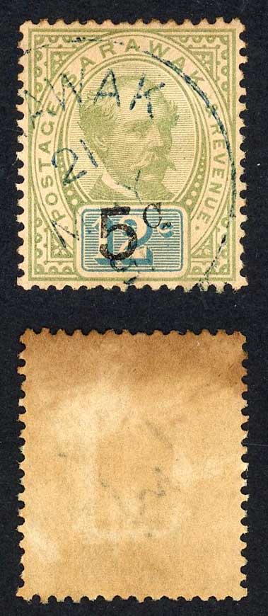 Sarawak SG25 5c on 12c Green and Blue (stop after c) Used Cat 60 pounds
