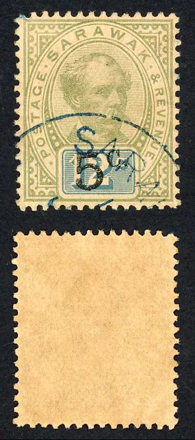 Sarawak SG25 5c on 12c Green and Blue (stop after c) Used Cat 60 pounds