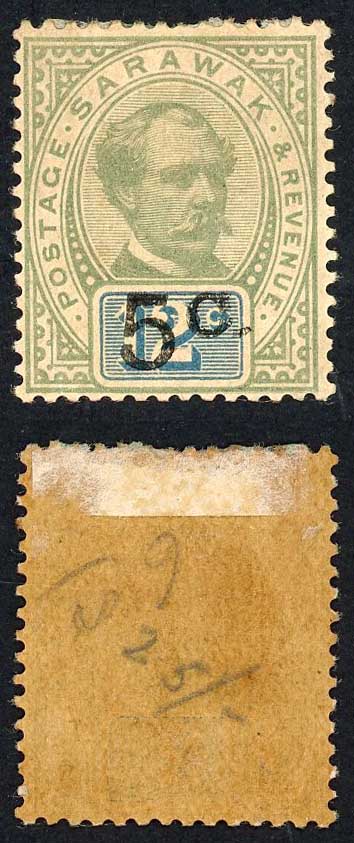Sarawak SG26 5c on 12c (stop after c) M/M (toned) Cat 325 pounds
