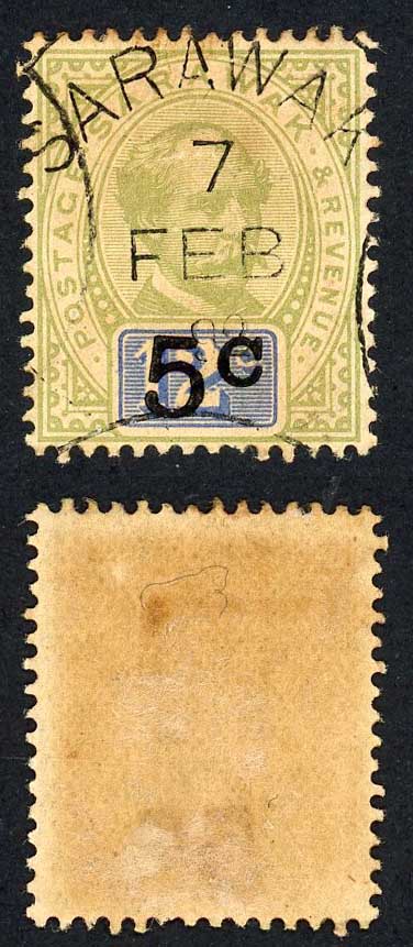 Sarawak SG26a 5c on 12c no stop after c CDS (toned) Cat 225 pounds
