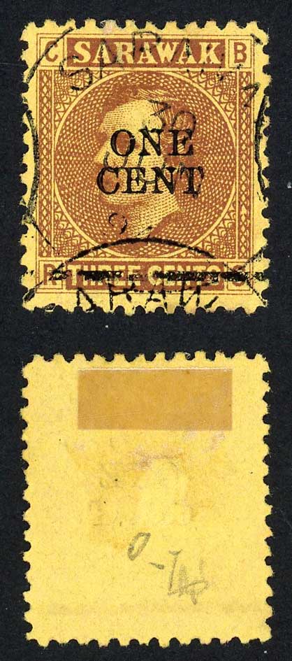 Sarawak SG27 1c on 3c Brown/yellow Broken Bar