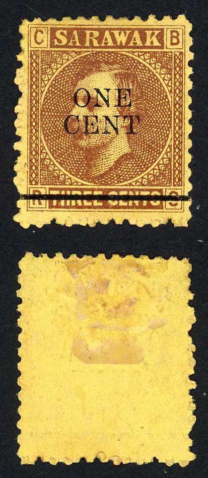 Sarawak SG27 1c on 3c Brown/yellow Narrow A