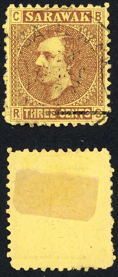 Sarawak SG27 1c on 3c Brown/yellow Overprint partially omitted