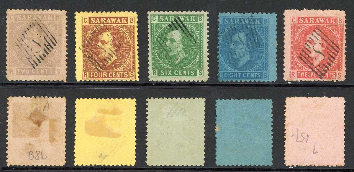 Sarawak SG3/7 1875 Set of 5 S in Diamond pmk Cat 38 pounds