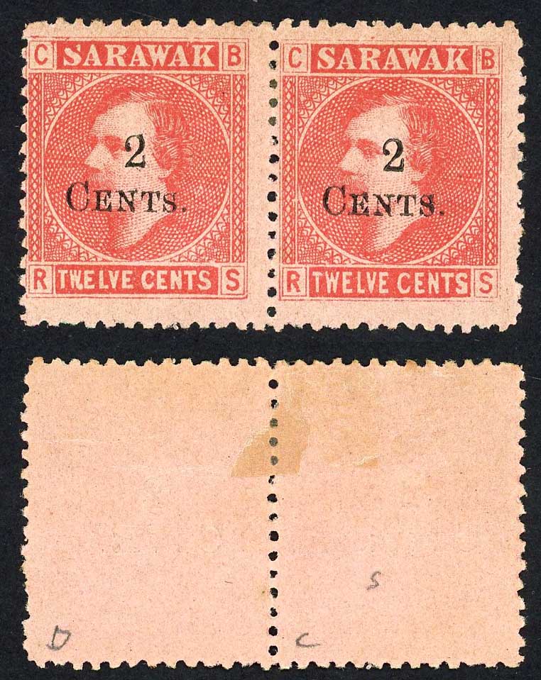 Sarawak SG33 2c on 12c Left stamp with Small s in cents