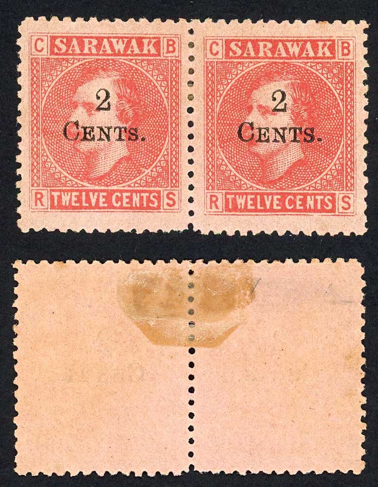 Sarawak SG33 2c on 12c Left stamp with Small s in cents