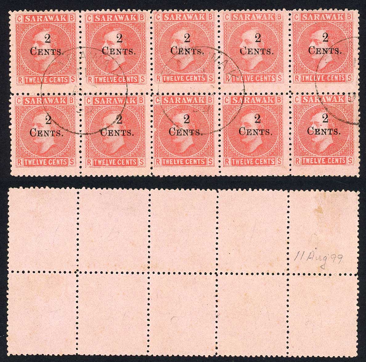 Sarawak SG33 2c on 12c Top Middle stamp small S in cents