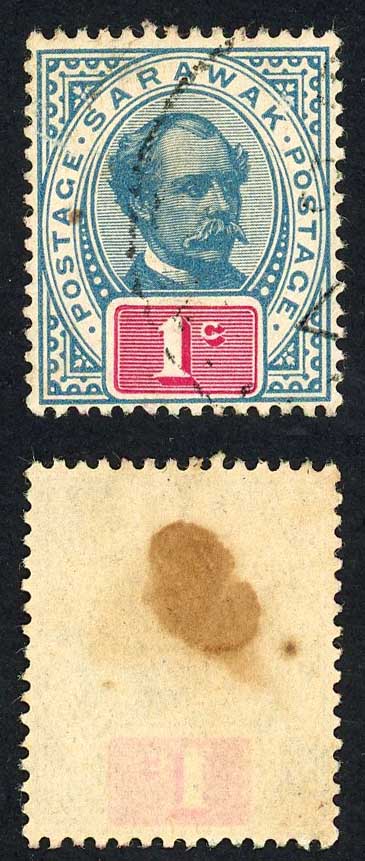 Sarawak SG36 1899 Postage Postage 1c with Collar Flaw