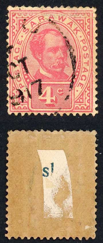 Sarawak SG39a 1899 Postage Postage 4c with Collar Flaw