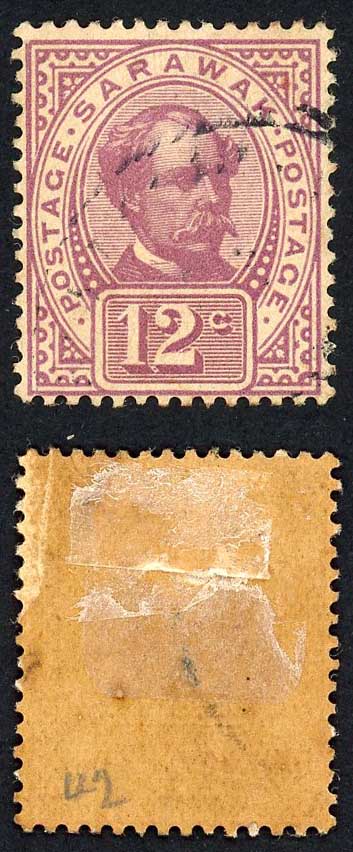 Sarawak SG42 1899 Postage Postage 12c with Collar Flaw