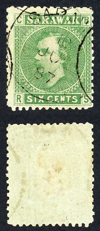 Sarawak SG5 1875 6c Green/green Full Letter N wmk