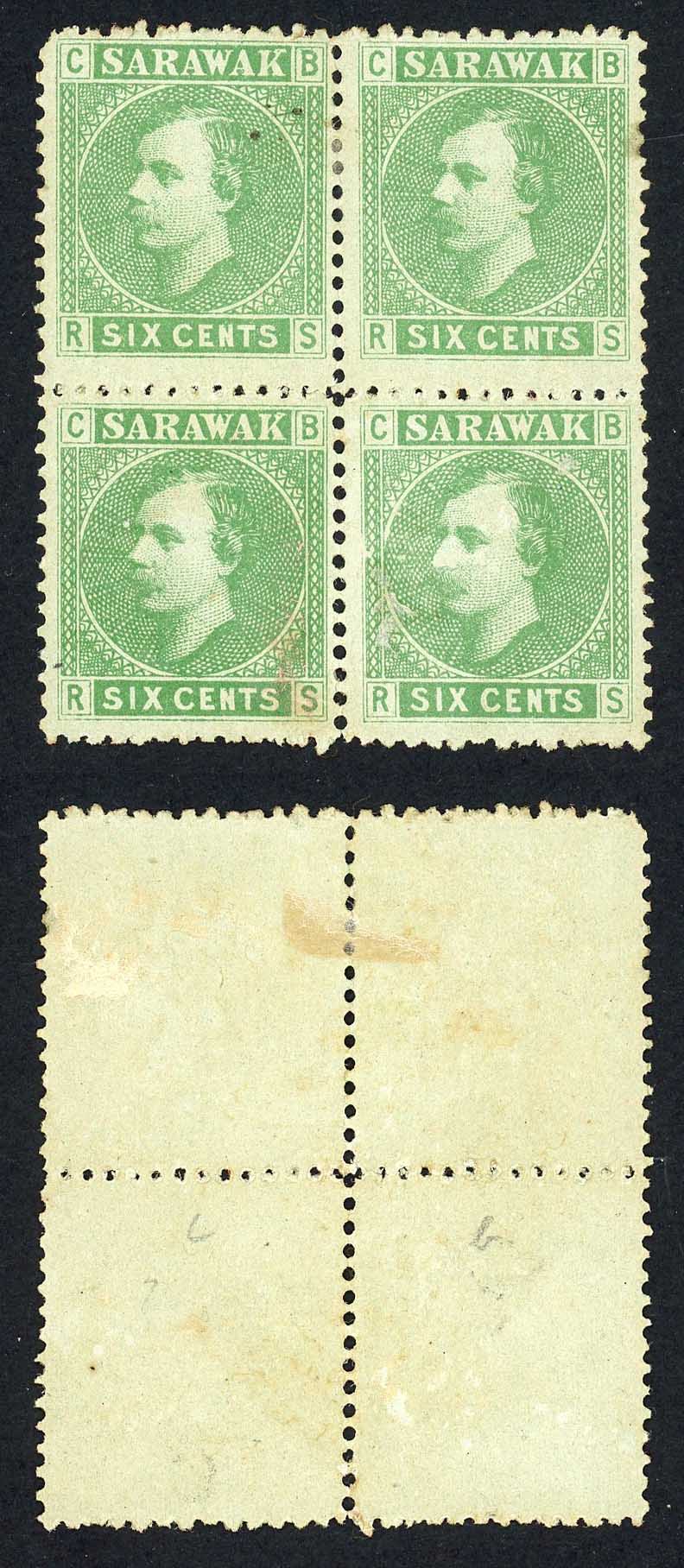 Sarawak SG5 1875 6c Green/green with Compound perfs