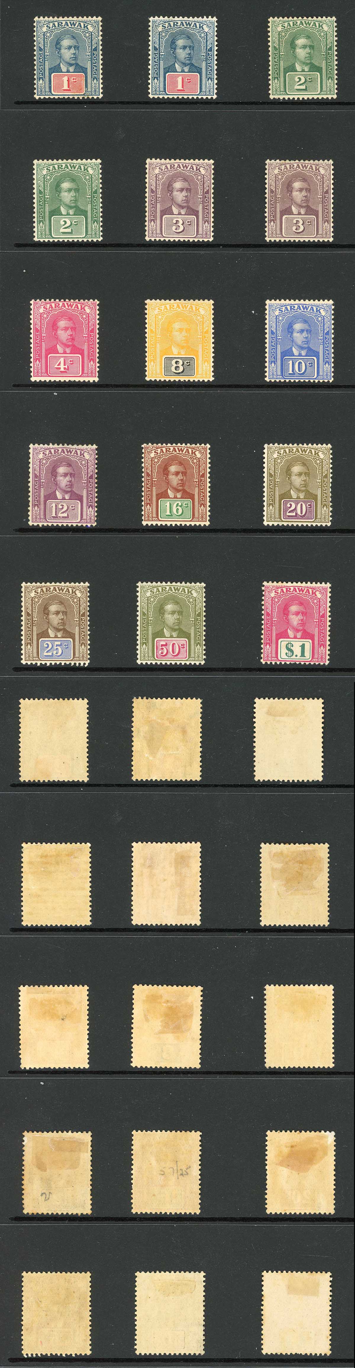 Sarawak SG50/61 1918 Set of 12 plus shades M/M Cat 140+ pounds