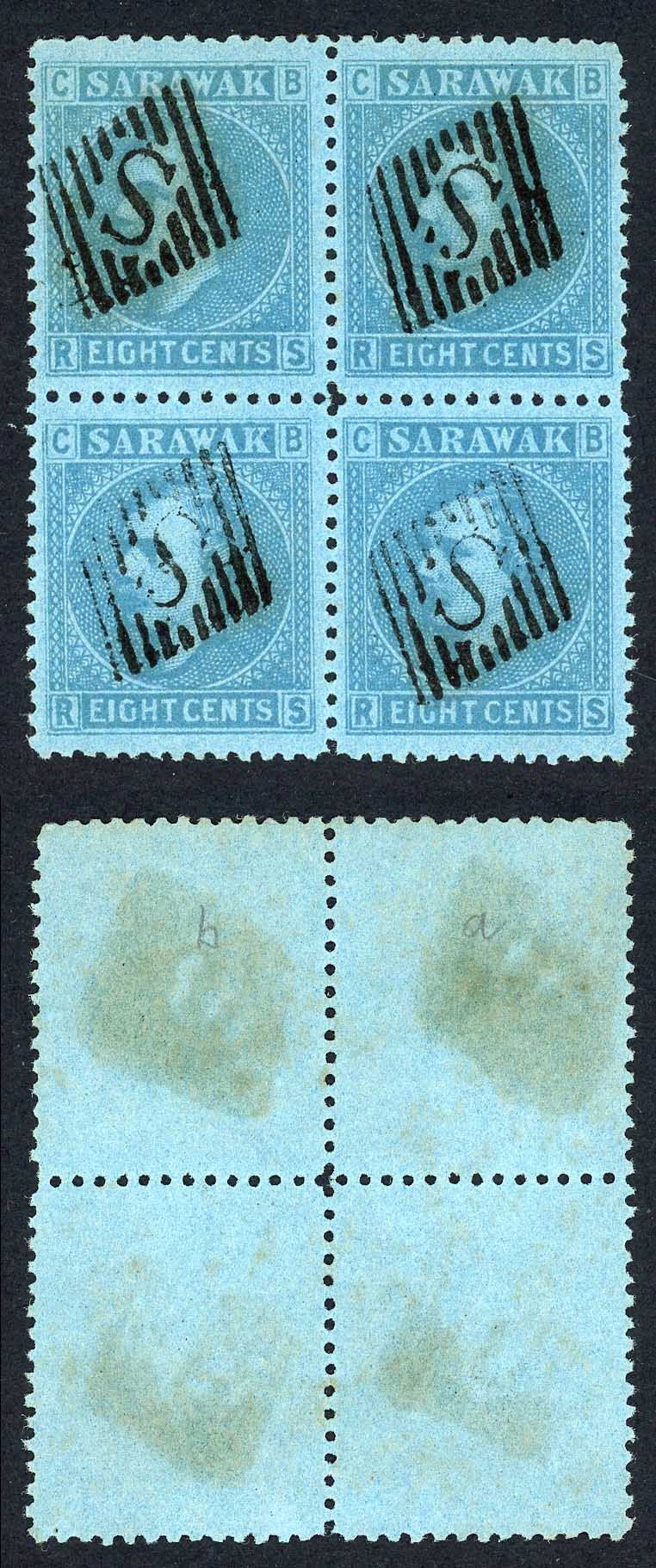 Sarawak SG6 8c Bright Blue/blue Fine used Block