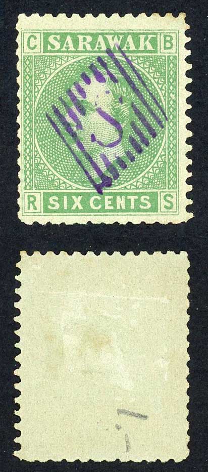 Sarawak SG6 8c Bright Blue/blue with S in Diamond cancel in VIOLET