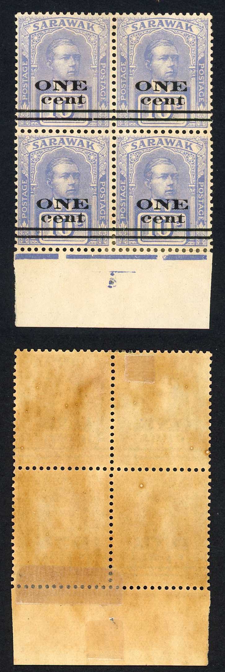 Sarawak SG72 1c on 10c Dull Blue Block 2 x U/M Cat 40 pounds