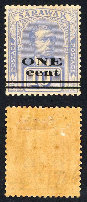 Sarawak SG72 1c on 10c Dull Blue M/M Cat 10 pounds