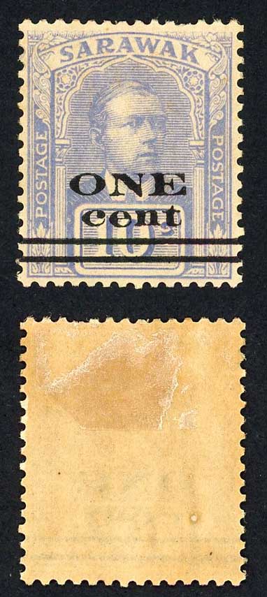 Sarawak SG72 1c on 10c Dull Blue M/M Cat 10 pounds