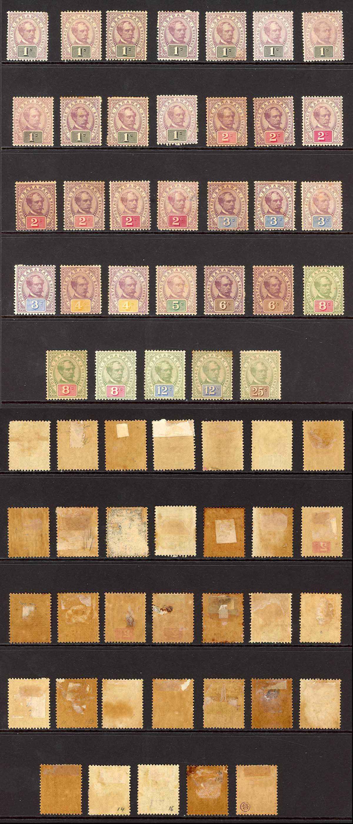Sarawak SG8/18 selection of values (33) but in poor condition Cat 593.50 pounds