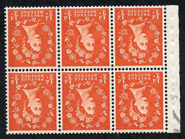 SB14a 1/2d 2nd Graphite Wmk Crowns Inverted Booklet Pane of 6 U/M