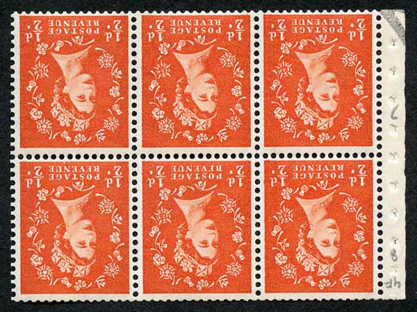 SB14a 1/2d 2nd Graphite Wmk Crowns Inverted Booklet Pane of 6 U/M