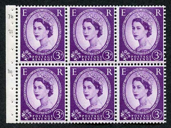 SB97 3d Wmk Crowns Upright Graphite Lines Pane of 6 U/M