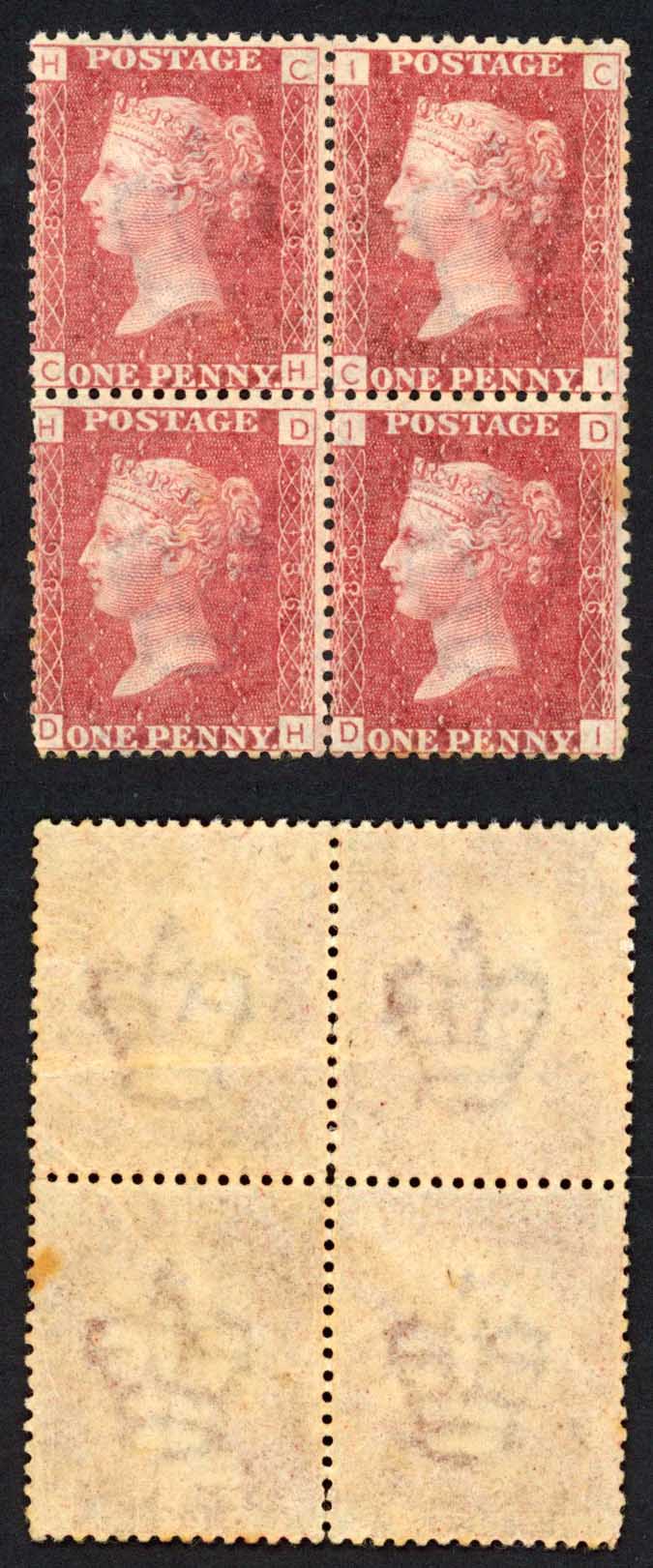 SG43 Penny Plate 186 Block 3 x U/M (tone spot) Cat 220 pounds