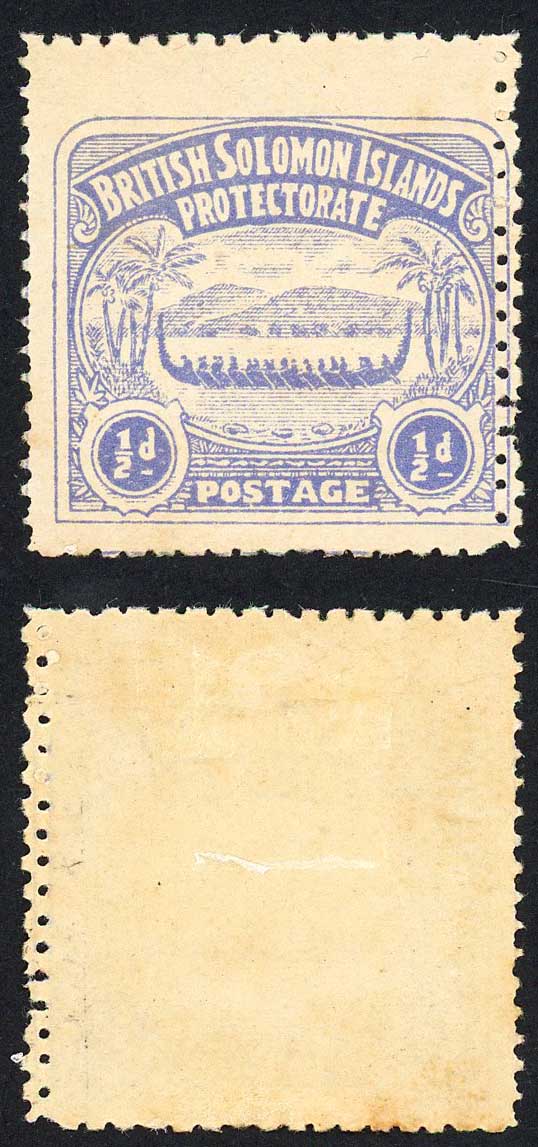 Solomon Is SG1 1/2d Ultramarine Large Canoe Extra perfs at right M/M