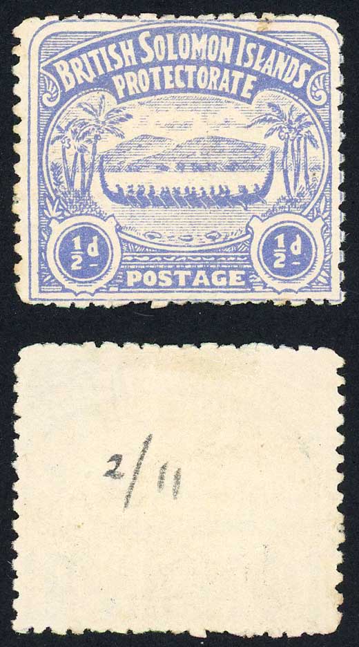 Solomon Is SG1 1/2d Ultramarine Large Canoe Position 11 no gum Cat 11 pounds
