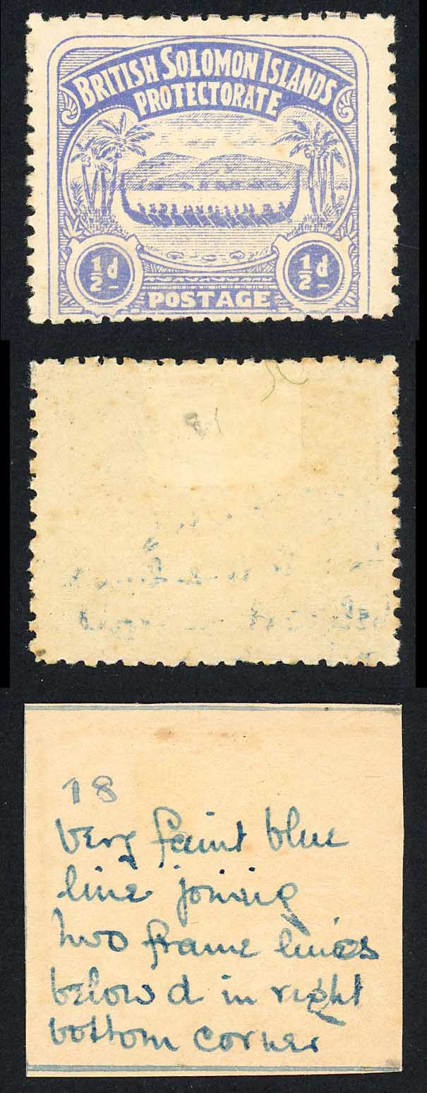 Solomon Is SG1 1/2d Ultramarine Large Canoe Position 18 M/M Cat 11 pounds