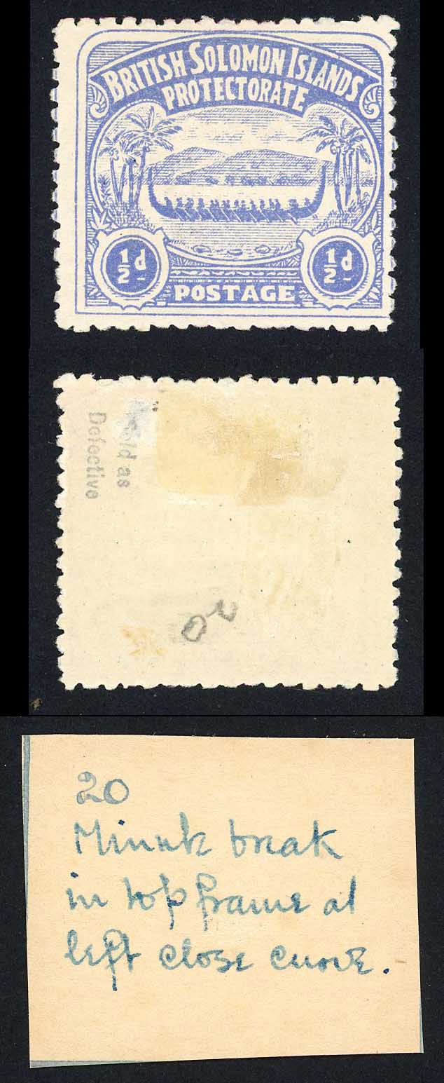 Solomon Is SG1 1/2d Ultramarine Large Canoe Position 20 M/M Cat 11 pounds