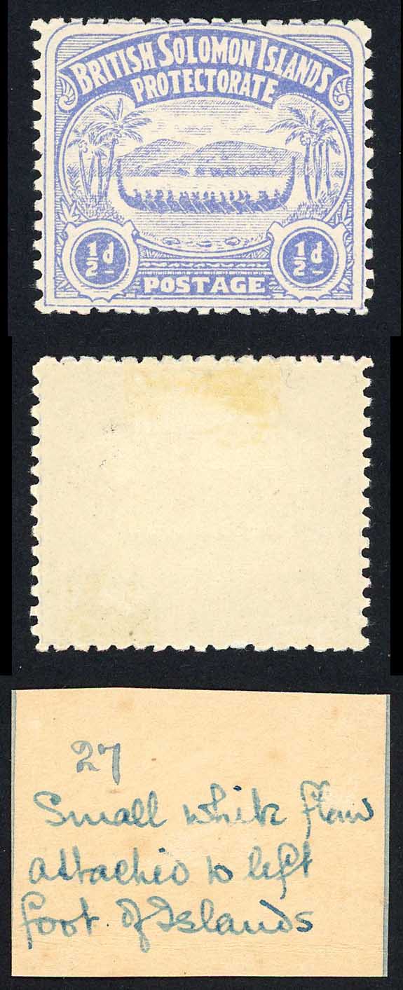 Solomon Is SG1 1/2d Ultramarine Large Canoe Position 27 M/M Cat 11 pounds