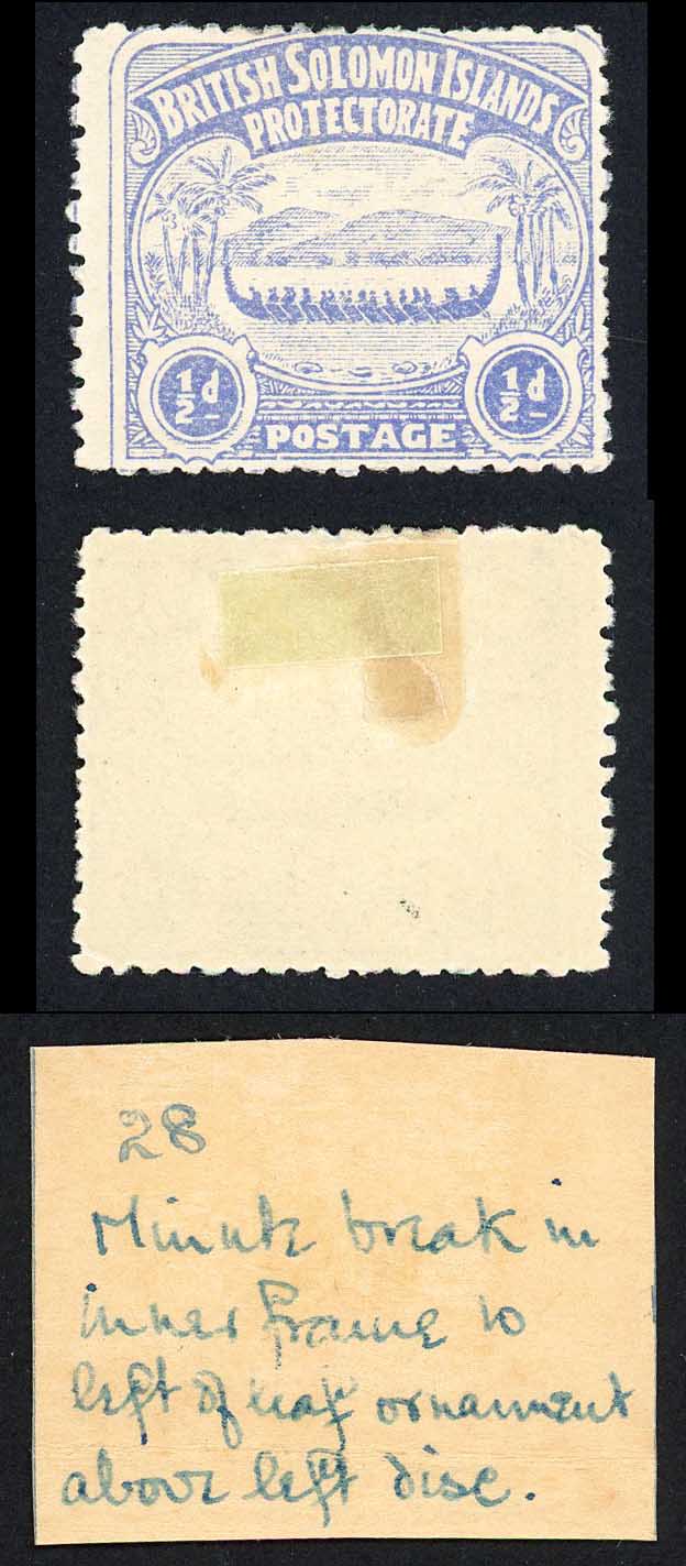 Solomon Is SG1 1/2d Ultramarine Large Canoe Position 28 M/M Cat 11 pounds