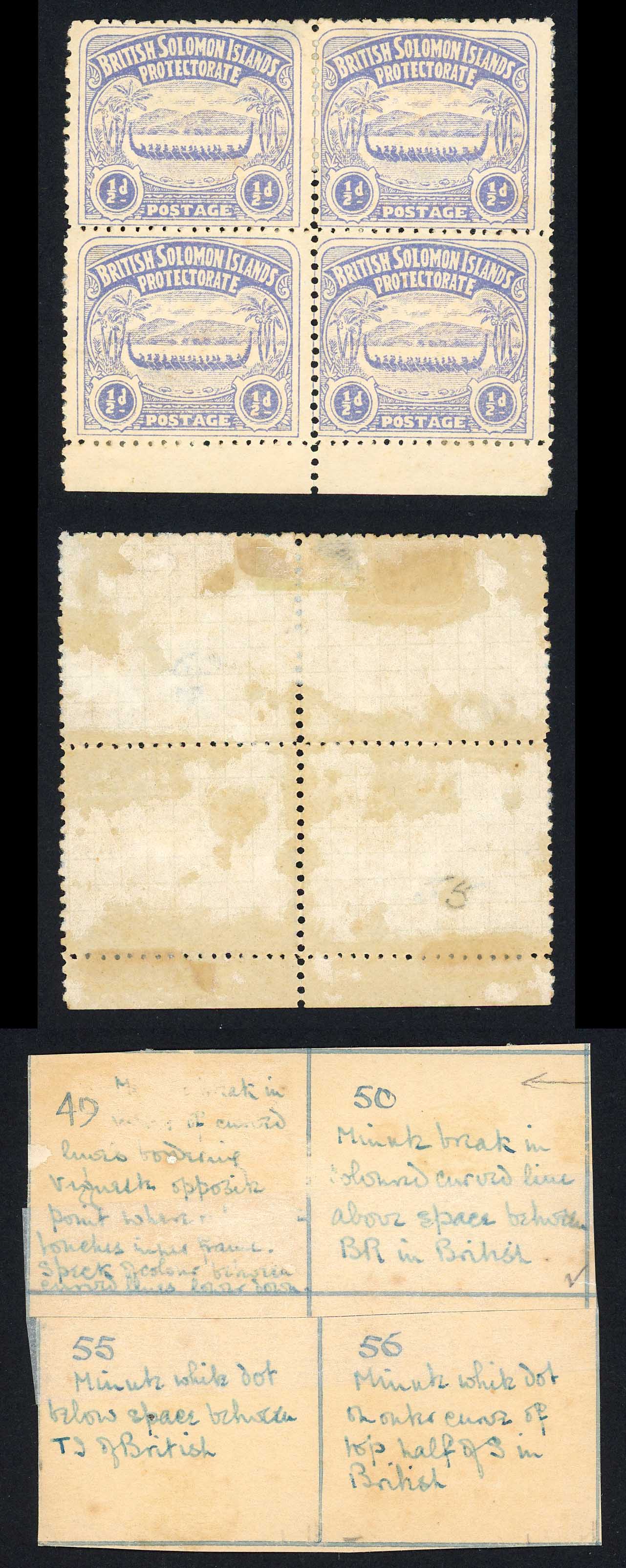 Solomon Is SG1 1/2d Ultramarine Large Canoe Position 49 50 55 56 M/M Cat 44 pounds