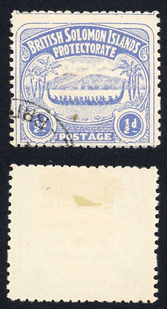 Solomon Is SG1 1/2d Ultramarine Large Canoe Position 52 used Cat 15 pounds