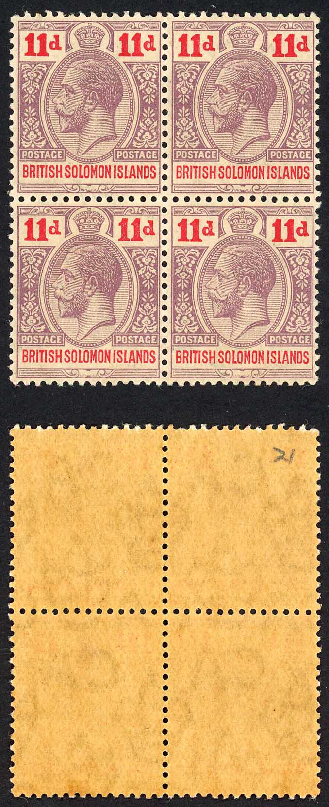 Solomon Is SG21 11d Block of Four U/M (toned gum) Cat 20 pounds