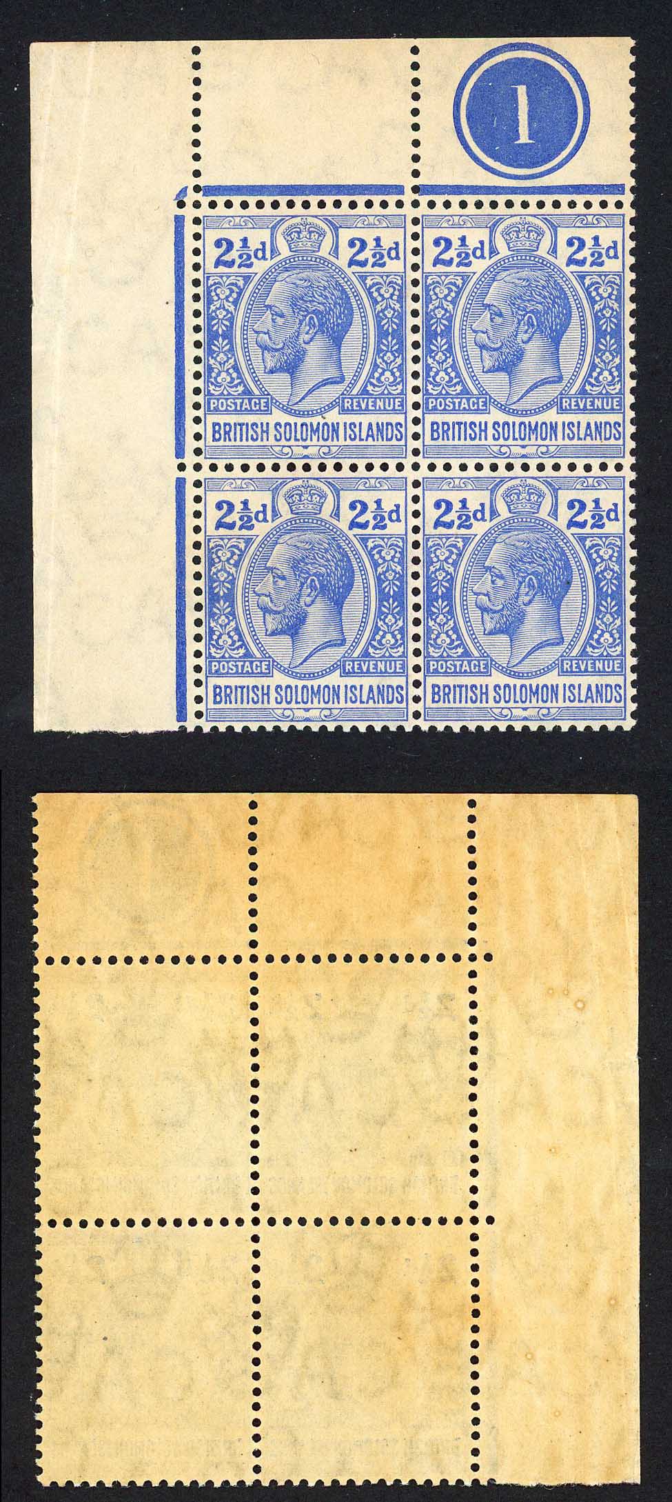 Solomon Is SG27 3 1/2d Ultramarine Wmk Mult CA (2 x U/M) toned