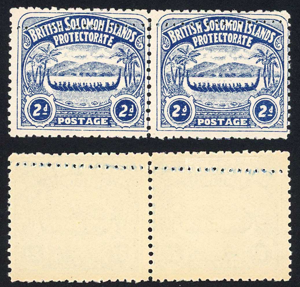 Solomon Is SG3 2d Indigo Large Canoe PAIR EXTRA Line of Perfs at TOP