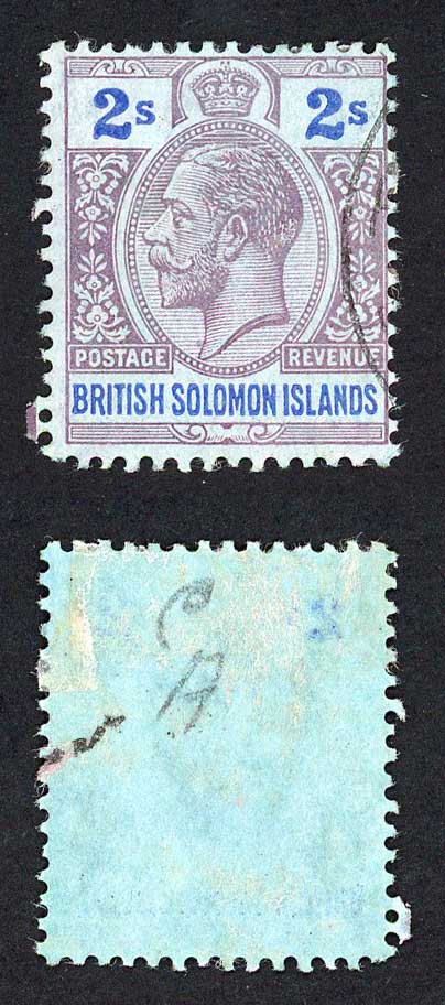 Solomon Is SG34 2/- wmk Mult CA CDS Pair Cat 30 pounds