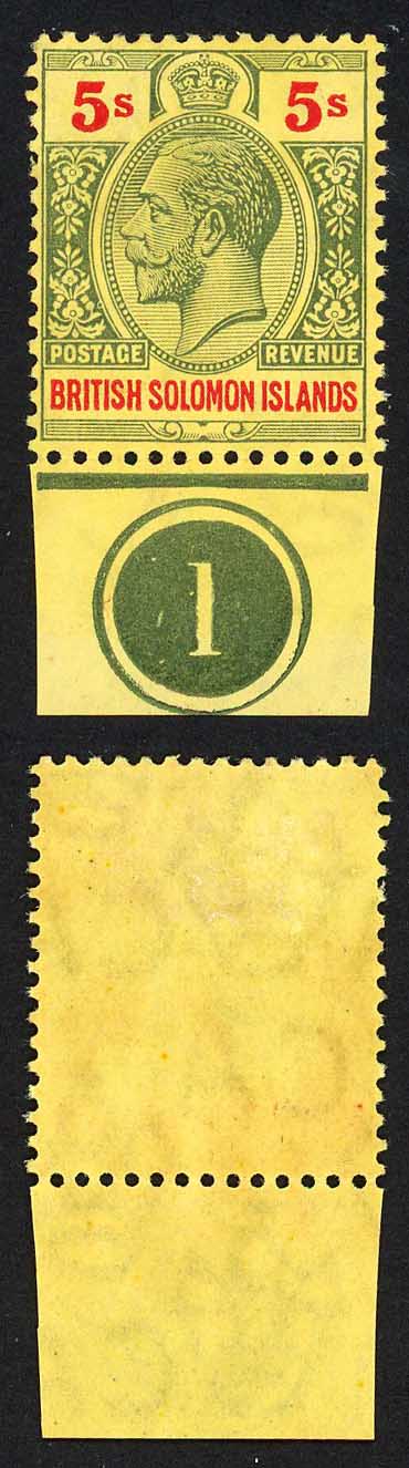 Solomon Is SG36a 5/- green on Orange-buff Wmk Mult CA M/M Cat 65 pounds