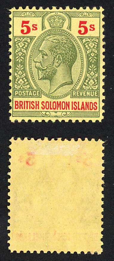 Solomon Is SG36a 5/- green on Orange-buff Wmk Mult CA M/M Cat 65 pounds