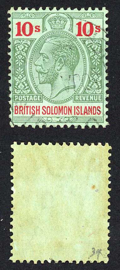 Solomon Is SG37 10/- Green and red/green CDS used Cat 85 pounds