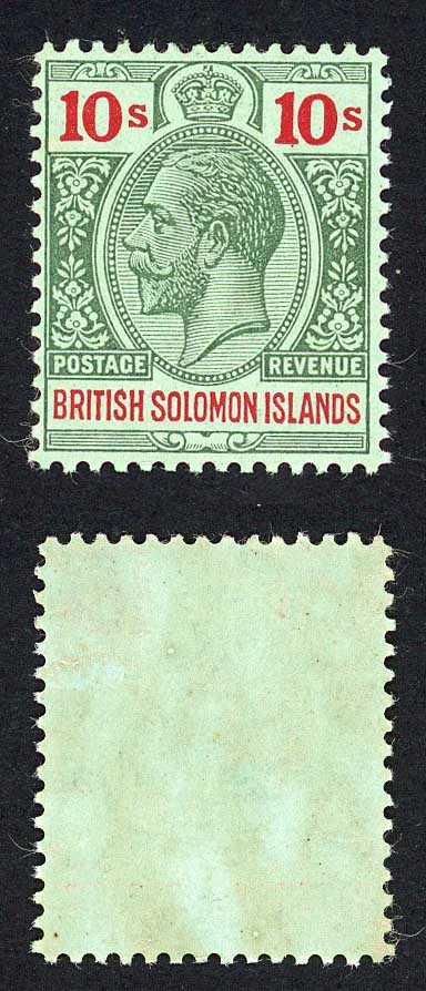 Solomon Is SG37 10/- Green and red/green M/M Cat 100 pounds