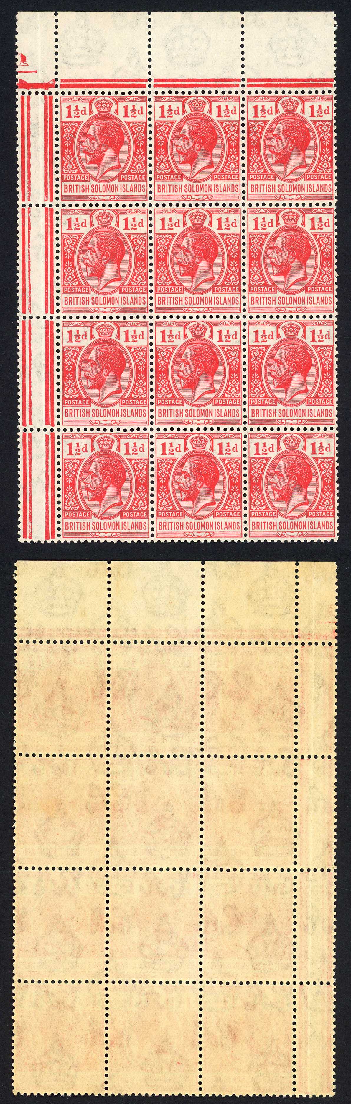 Solomon Is SG42 1 1/2d Bright Scarlet U/M Block of 12 Cat 27 pounds