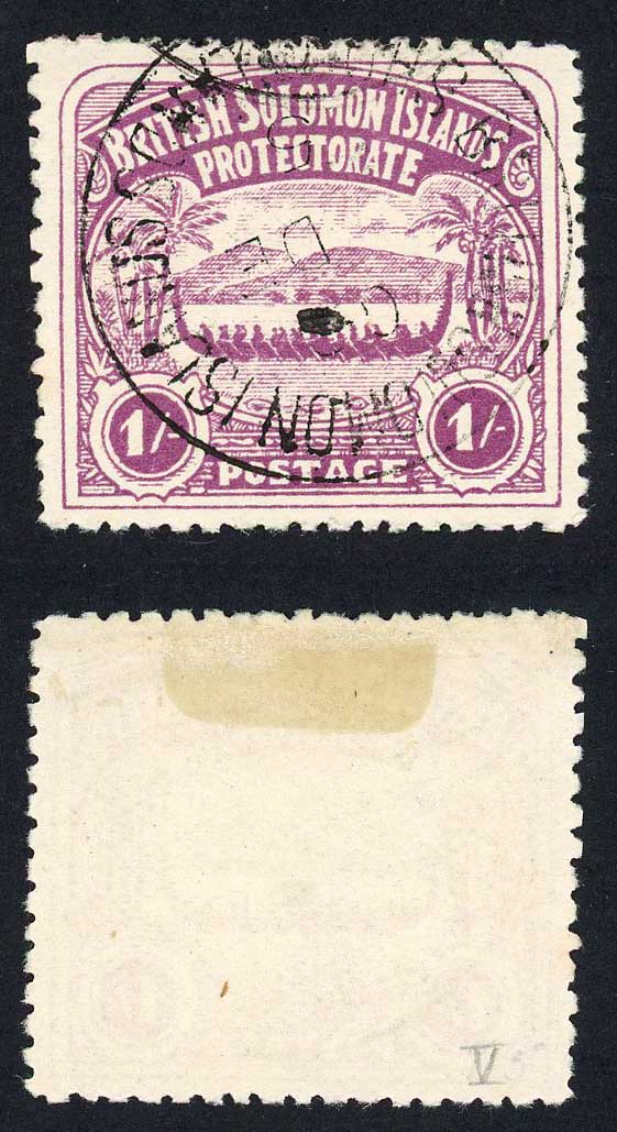 Solomon Is SG7 1/- Bright Purple Large Canoe Shortlands CDS Cat 120++ pounds
