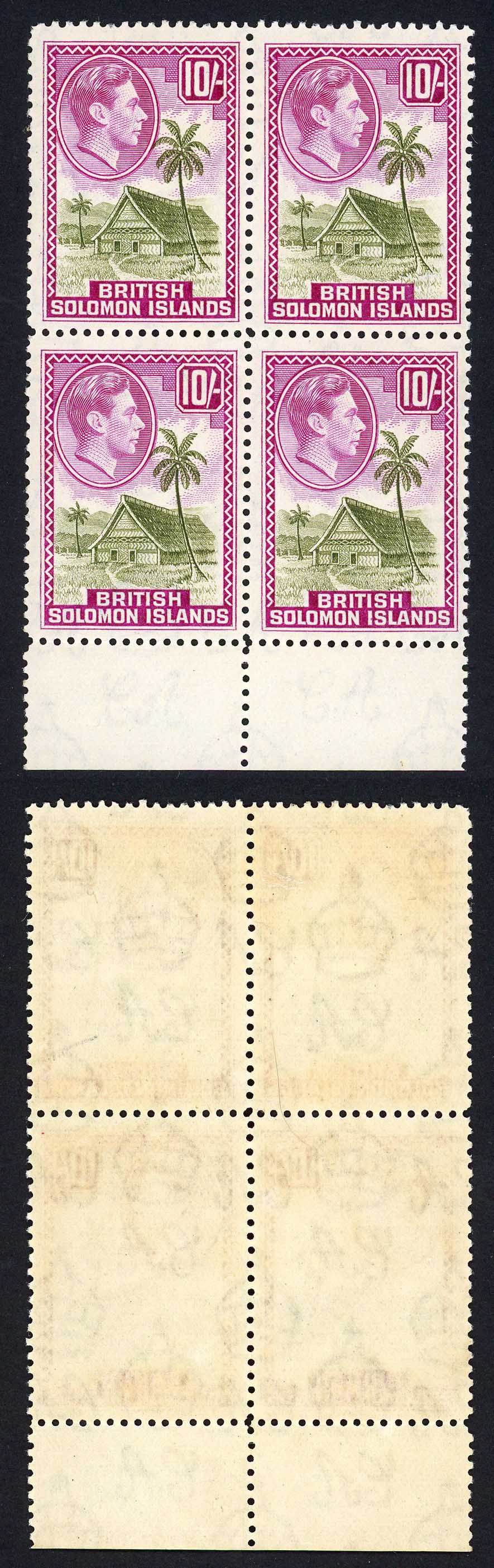 Solomon Is SG72 10/- U/M Block of Four Cat 40 pounds