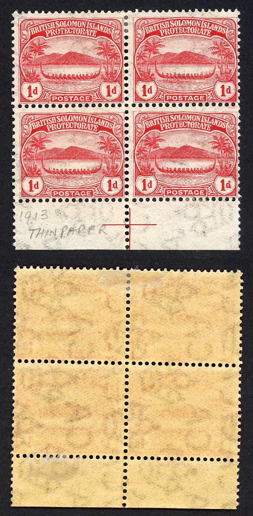 Solomon Is SG9 1d Red Block on THIN paper (2 x U/M)